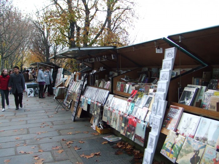 Ao andar pelas margens do Sena, você vai passar pelos famosos bouquiniste do Sena, vendendo livros antigos, cartões postais, e as eternas lembranças de Paris.