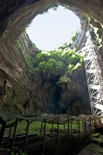 Hoje, 400.000 visitantes descem neste abismo para observar as esculturas trabalhadas durante milênios pelas gotas de água.