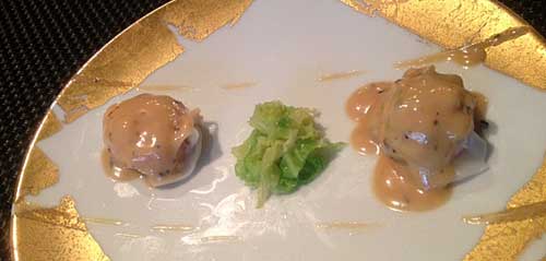 Os ravioles de lagosta estavam divinos e eles fazem parte do “ritual Robuchon” de uma amiga presente.