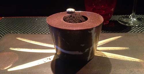 Minha sobremesa foi a mais bonita com várias texturas de chocolate.