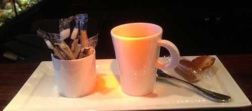 O prato principal que roubou o espetáculo foi o camarão envolvido por macarrão “cabelinho de anjo”. Minha cara metade pediu codornas recheadas com foie gras, mas quando me lembrei da foto já era tarde demais. Em casa ele confessou que foi a melhor codorna da sua vida. Tomei nota para a próxima vez.