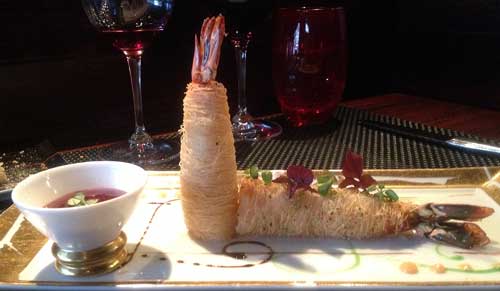 Posso afirmar que os vinhos estavam ótimos e que o sommelier do restaurante concordou com as escolhas de um dos amigos presente, enólogo discreto. Pedimos dois rouges, um mais leve para acompanhar os pratos de peixes e frutos do mar e outro mais pesado para carnes e aves.