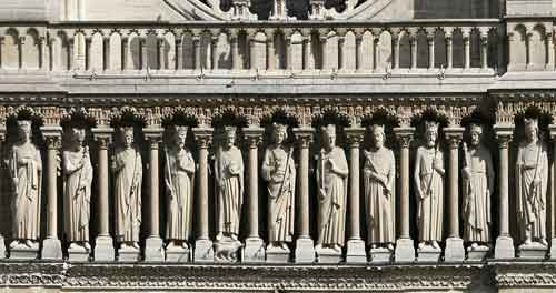 Quando estiverem diante da Notre Dame, a vinte metros do solo, você verá 28 personagens representando os reis da Judéia. Cada estátua mede 3.50m de altura.