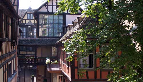 O Hotel Cour du Corbeau, situado ao lado da famosa catedral de Estrasburgo, é um quatro estrelas requintado. O prédio, antigo albergue construido em 1580 e tesouro do patrimônio arquitetural francês, foi inteiramente restaurado para manter a tradição que sempre foi a sua, hotelaria. São cinquenta e sete quartos classificados em quatro categorias: do mais simple até alto luxo.
