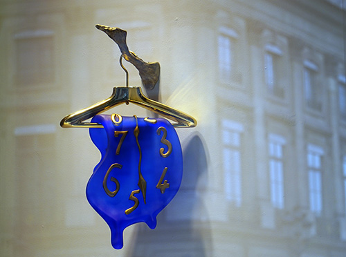 Durante alguns anos mantive esta relação atração/repulsão até o dia que encontrei, na vitrine, o divertido “relógio mole” assinado por Salvador Dali. Um relógio que tenta escapar da marcha inevitável do tempo. Um relógio tipo camembert derretido preso em um cabide comum. Em 1988, Daum editou 850 exemplares da Montre Molle, motivo presente em um quadro de Dali que se encontra no MoMA.