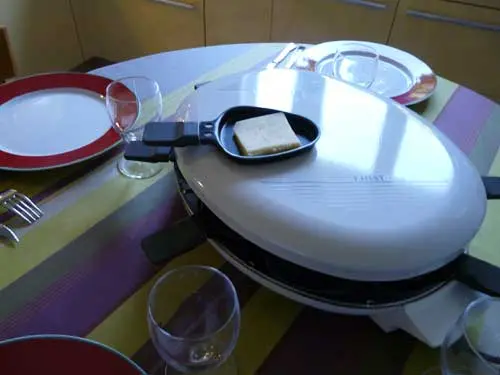 Hoje em dia esta receita é preparada com aparelho especial raclette. Vocês o encontram no BHV, na Lafayette Maison ou em qualquer loja de eletro-domésticos.