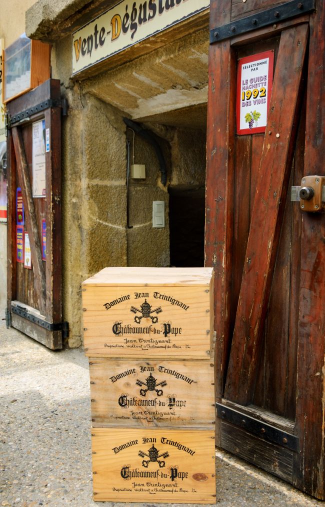 Caixas do famoso vinho Chateauneuf-du-Pape. Foto: Elena Dijour no Shutterstock