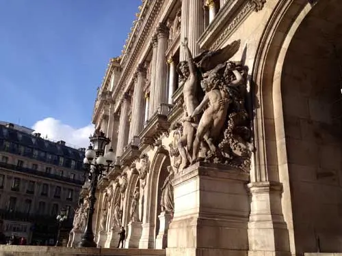 A Opéra de Paris é um prédio que reúne vários estilos, um pouco barroco, um pouco cópia do renascimento italiano. Em todo caso uma bela obra, com uma fachada decorada por esculturas que na época escandalizaram os puritanos e uma decoração interior impressionante.